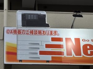 創業以来、取り付けた事務所の看板ですが、何をしている業者か?わかりづらかったため複合機の写真等を追加修復いたしました。