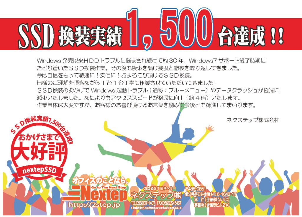 おかげさまで「SSD換装実績が1,500台を達成!!」いたしました。