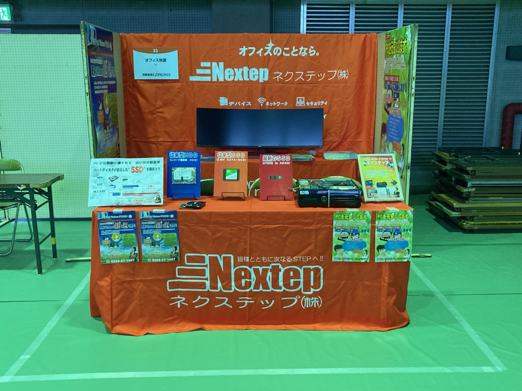 とのコンセプト。ネクステップは今回はPCに特化して商品出展。PCの仕組みやSSD換装・今後のWindows展望をご来場のお客様に説明させていただきました。