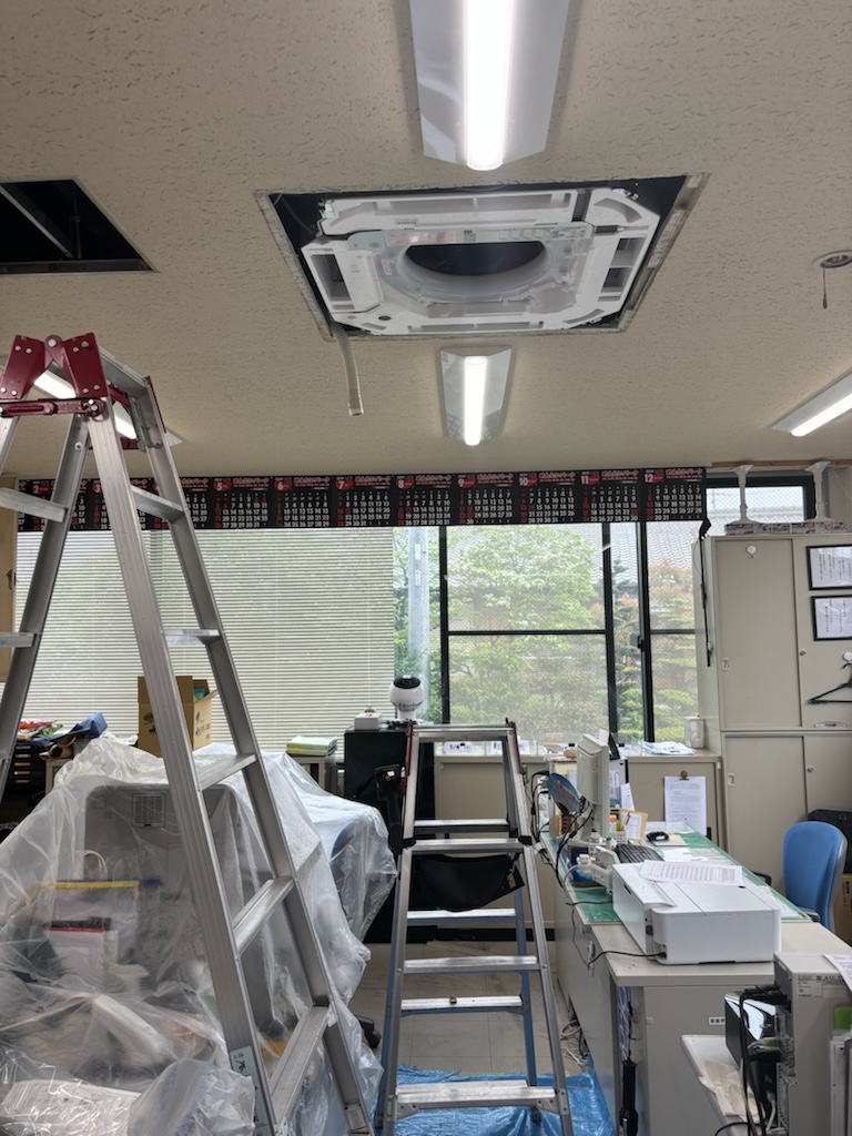 この度、ご縁を頂きエアコンの全面取り換え工事をさせていただく事になりました 1F事務所内から各フロアの一部でも全6基、室外機は屋上での入れ替えの為クレーン作業となります 約30年ほどご利用されていてかなりの老朽化。電気代の節約もあり他社よりかなり安価で工事が可能でした。 GW谷間の4月末で工事が出来、来るべく猛暑に何とか間に合いました。