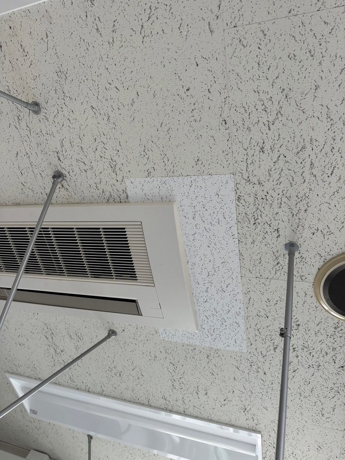 この度、ご縁をいただきエアコンの取り換え工事をご依頼いただきました。 サイズかなりコンパクトになり天井の補修も一緒に施工させていただきました 電気代も節約できると思います。