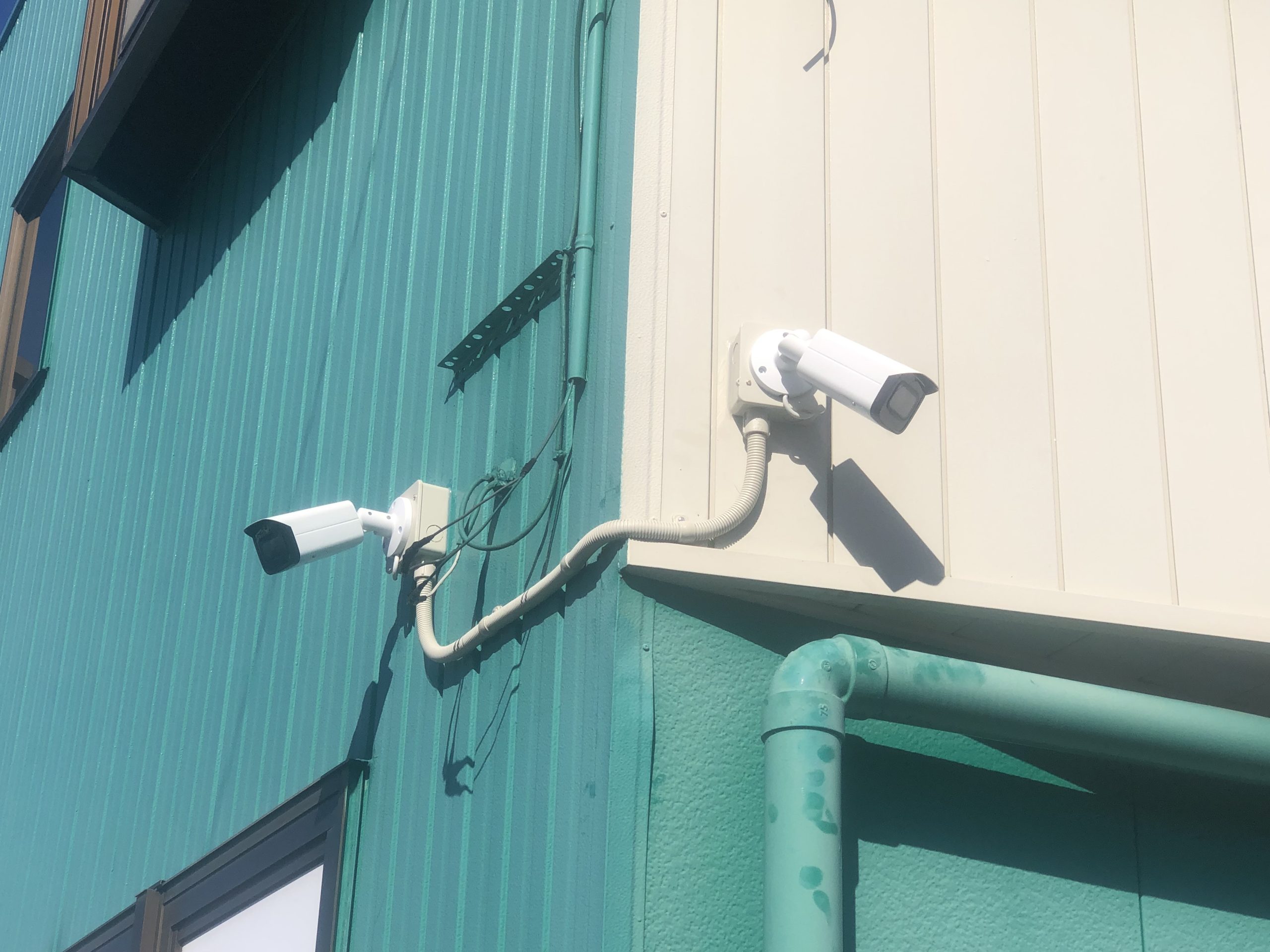 この度、事務所と資材置き場の監視のために防犯カメラを設置させていただきました。 車通り、人通りが多く近所でも物騒な事件が多いみたいでお声掛けいただきました。 画質のなめらかさ、綺麗さに大変お喜びいただきました。 外出先からスマホにて映像が閲覧できるよう設定も致しました。 ありがとうございました。