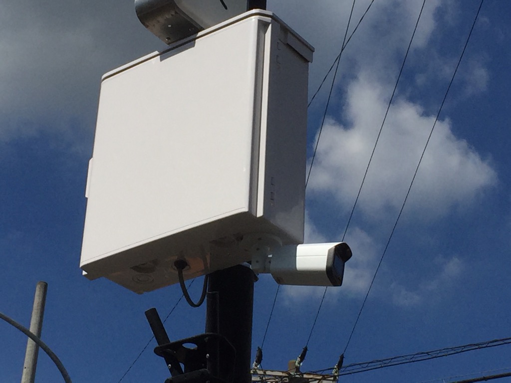 この度、防犯カメラをご導入頂きました。カメラ2台を道路沿いの街灯に取り付けさせて頂きます。