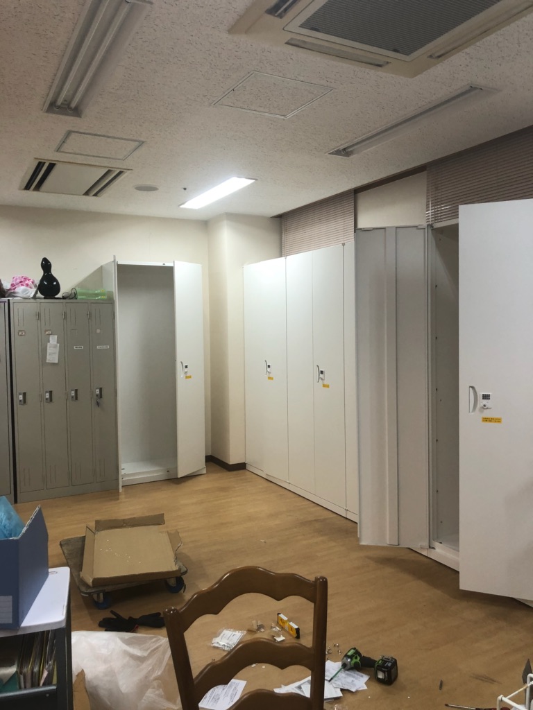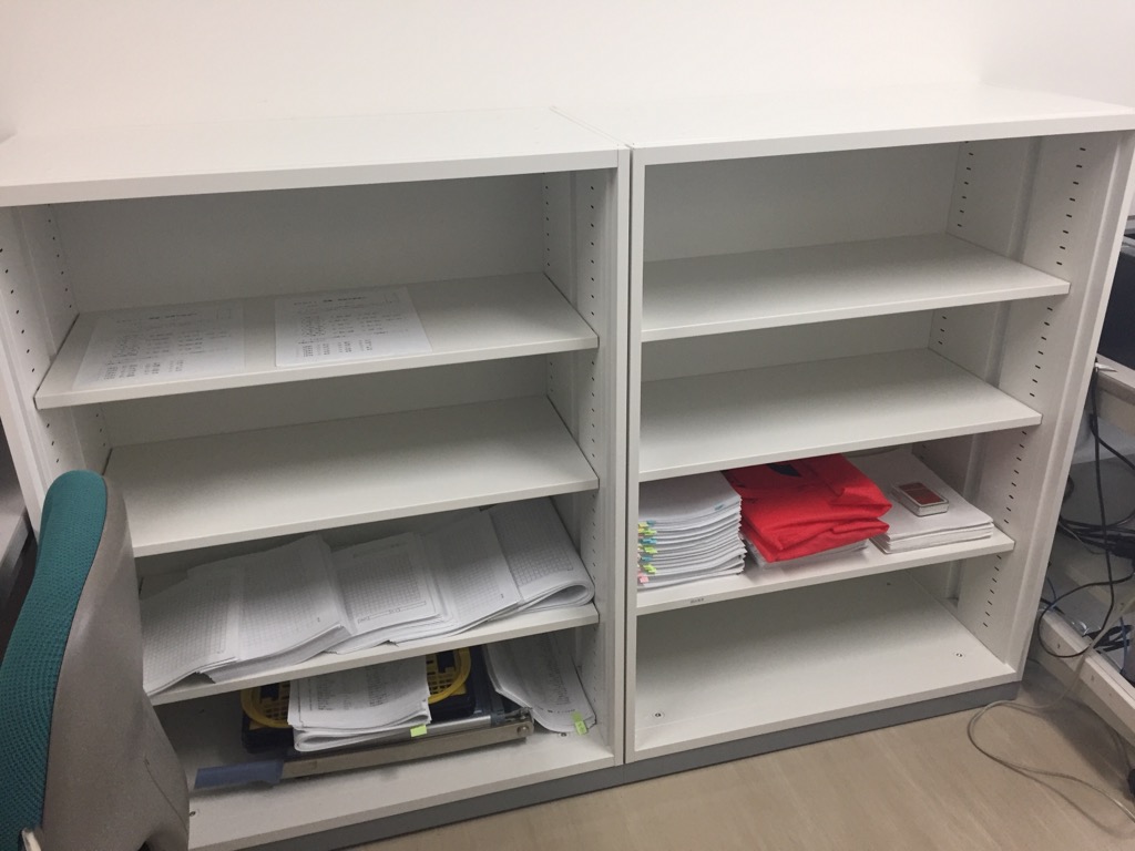 今回事務所内の書庫の入替を致しました。 長年ご使用頂いてた書庫を撤去し、新たにホワイト色の書庫を導入。 雰囲気がかなり変わりました!