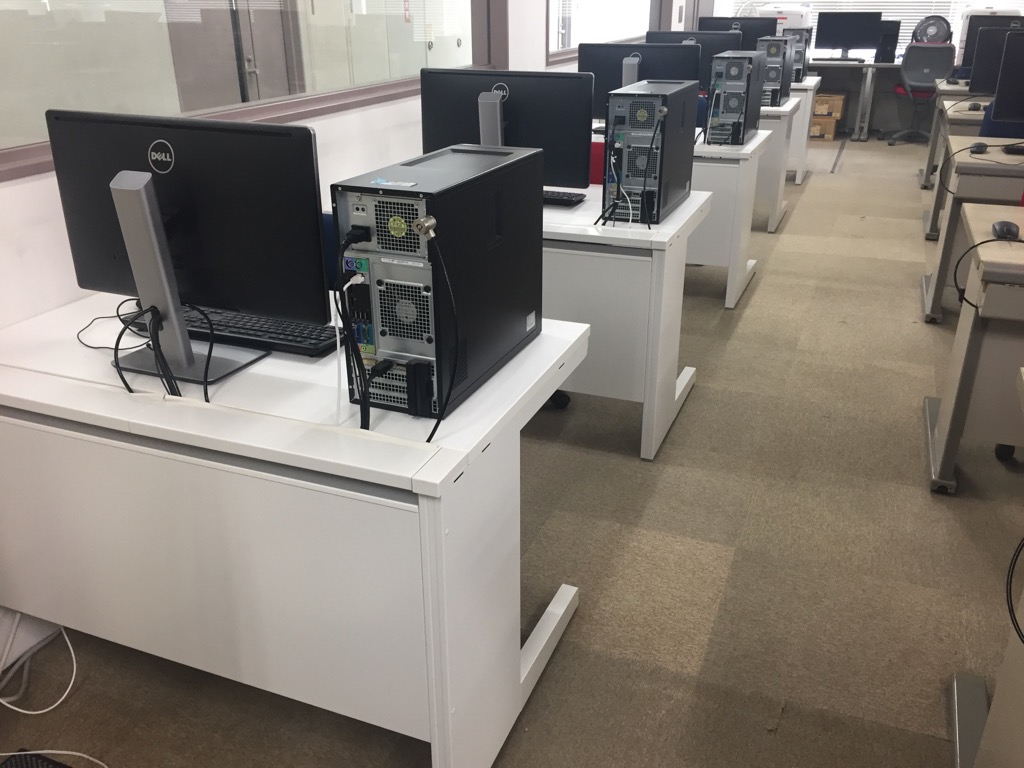 この度、講義室内のカウンター及びデスクをリニューアル していただきました。 昨今のカラー「ニューホワイト」は白色が鮮やかで講義室内が 非常に明るくなったと大変喜んでいただきました。