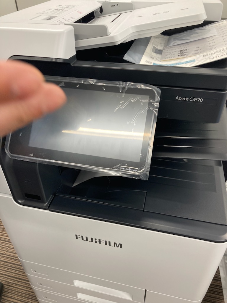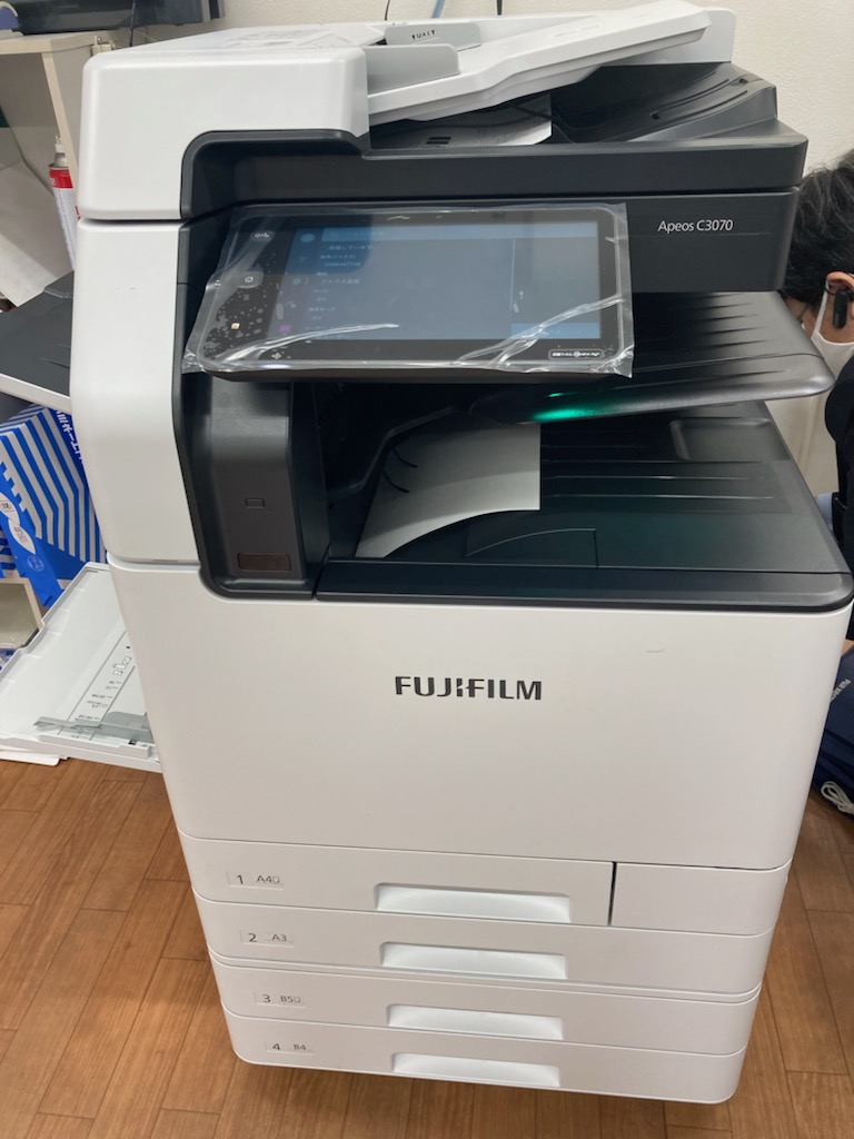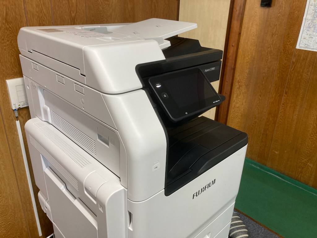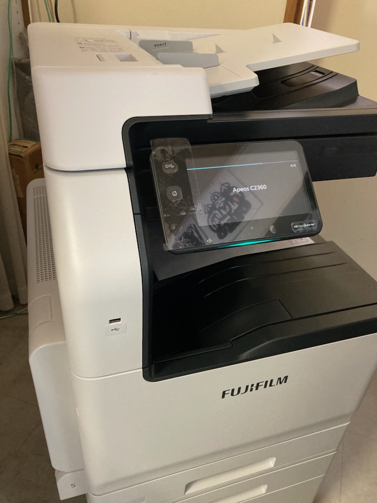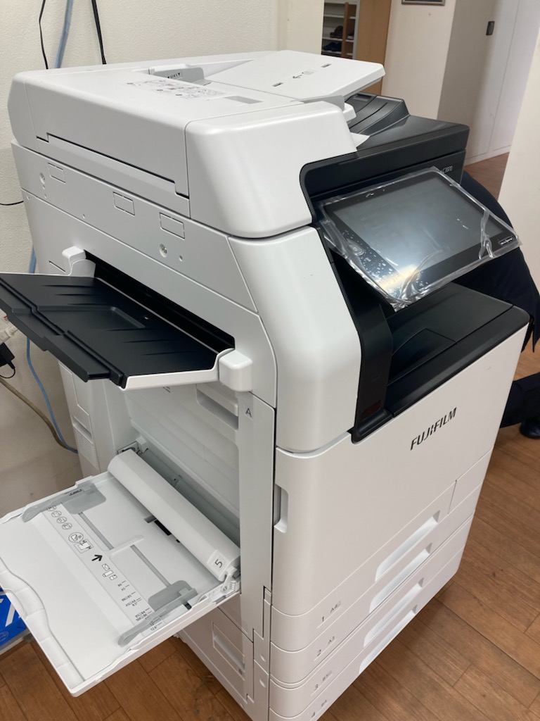 この度、永年ご利用頂きました複合機のリニューアルをさせていただきました。 新製品に伴いApeosシリーズを導入いただきました。 筐体の見た目もさることながら、操作性や様々な機能もグレードアップしておりDocuWorksを絡めて 業務を完全ペーパレス化となりました。 弊社スローガンの「たかが複合機。されど複合機。」まさに実感していただきました。 今まで外注作成されていた外看板もレザーピーチ用紙に複合機で印刷でき内製化していただきました。 もちろんこの期にDocuWorks+トレイ も最新Verにしていただきました。