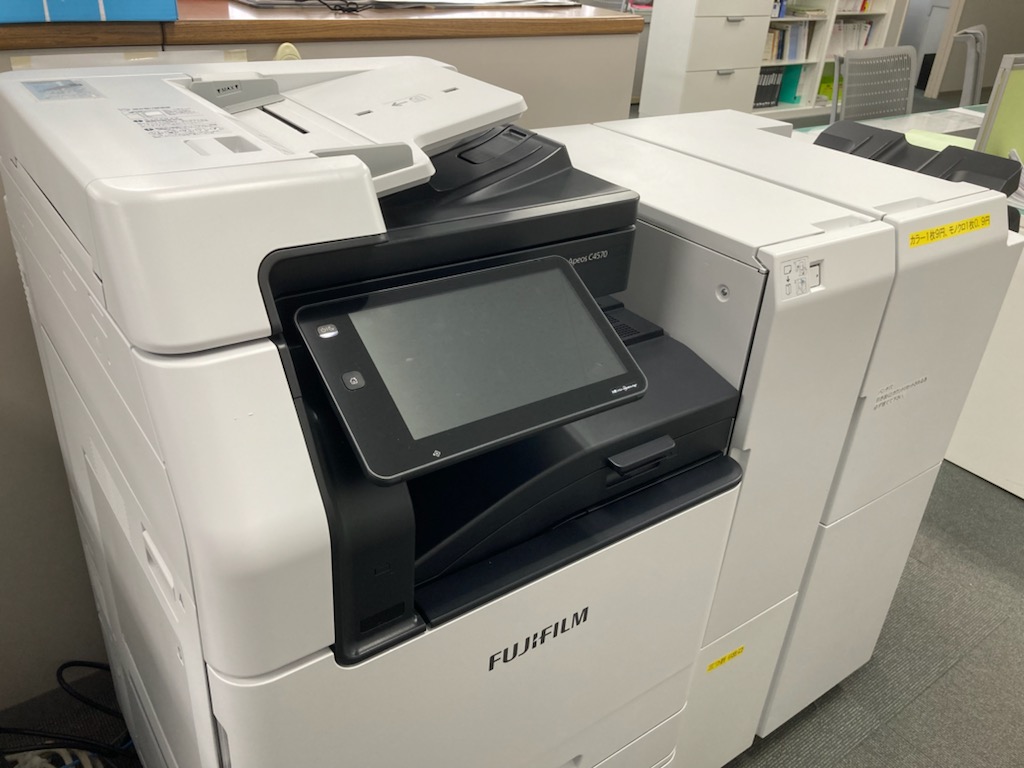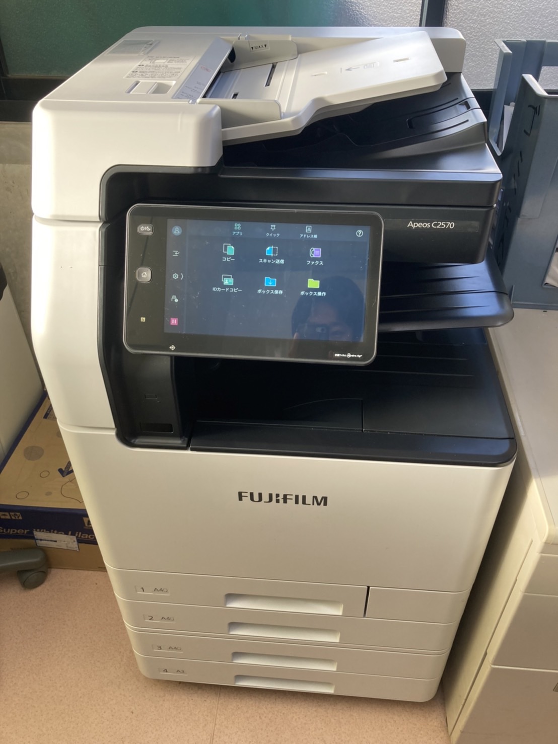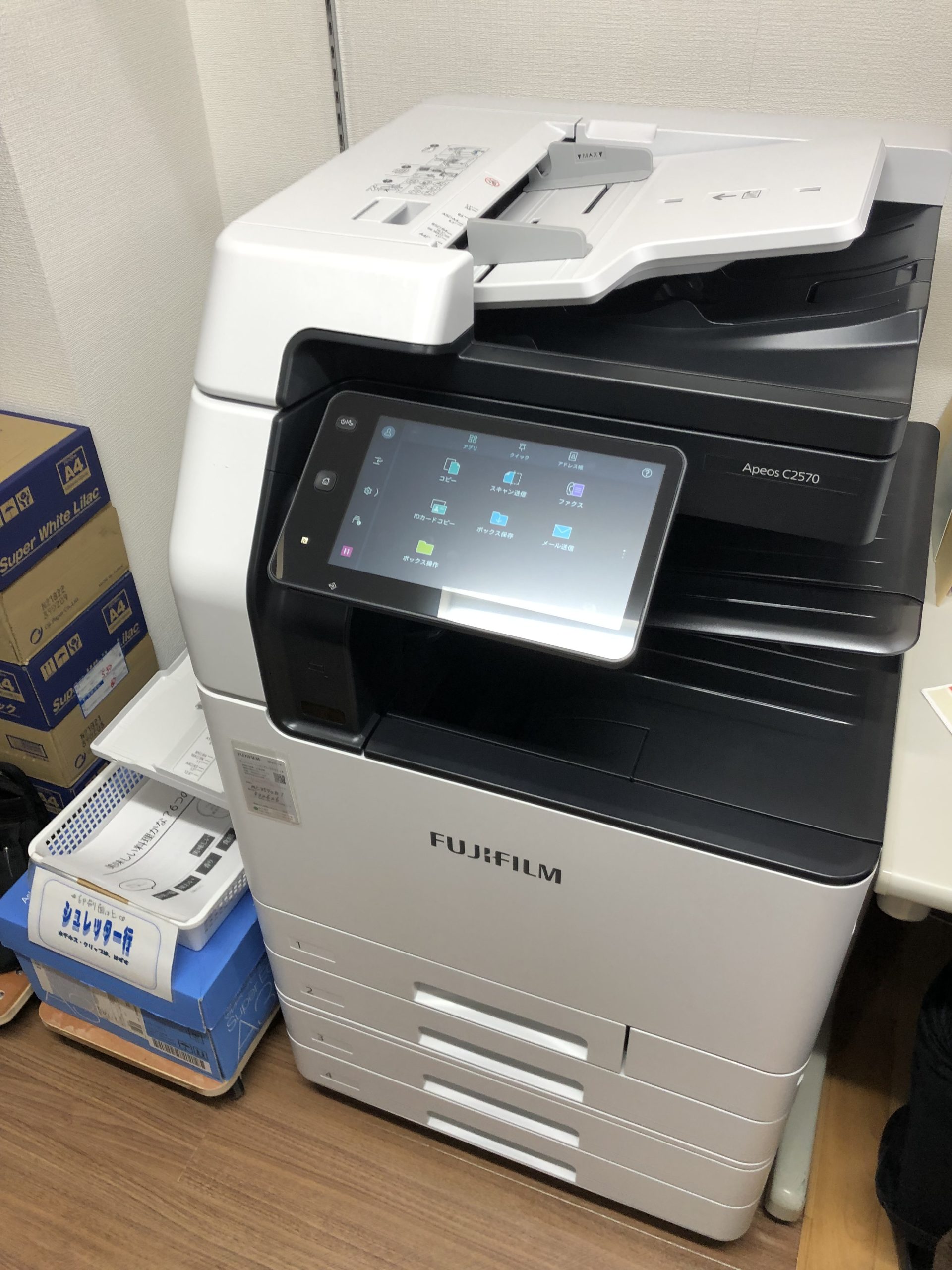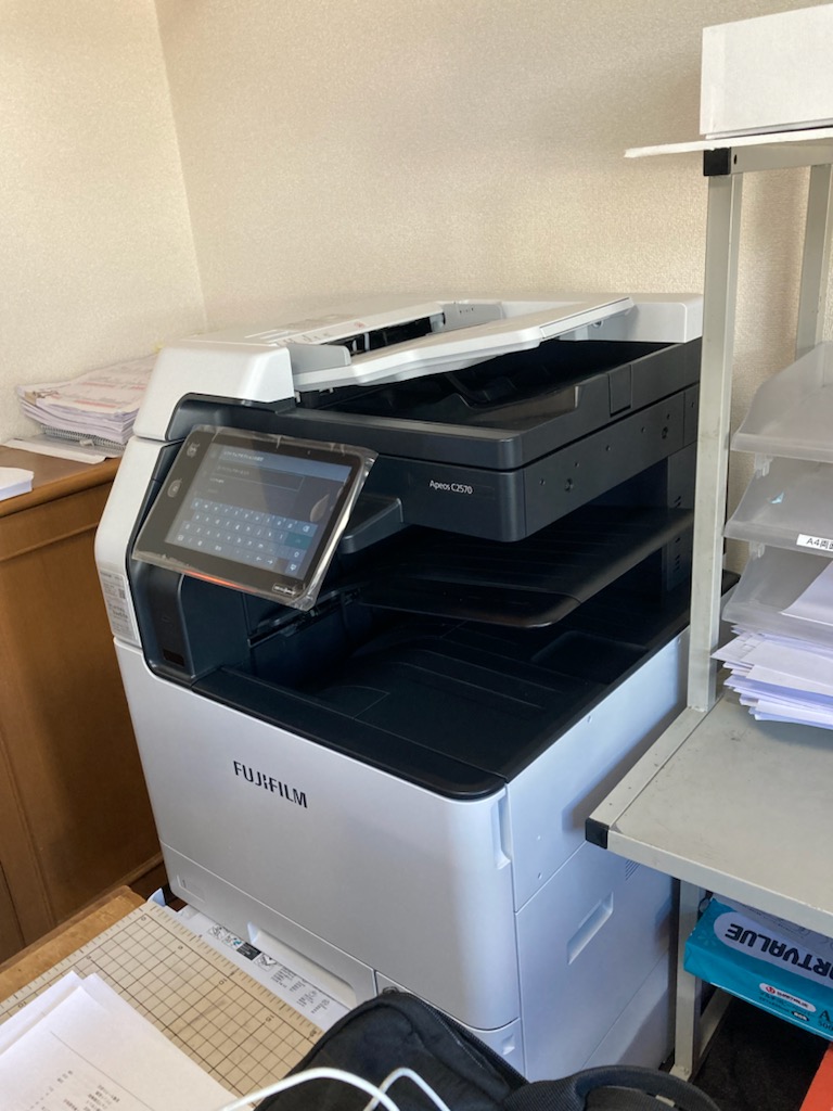 この度長年ご利用いただいておりましたXEROX複合機を FUJIFILMの複合機に入れ替えをさせて頂きました。 お客様から、「画面が大きくてスマホみたいだね!」と 大変お喜び頂きました!