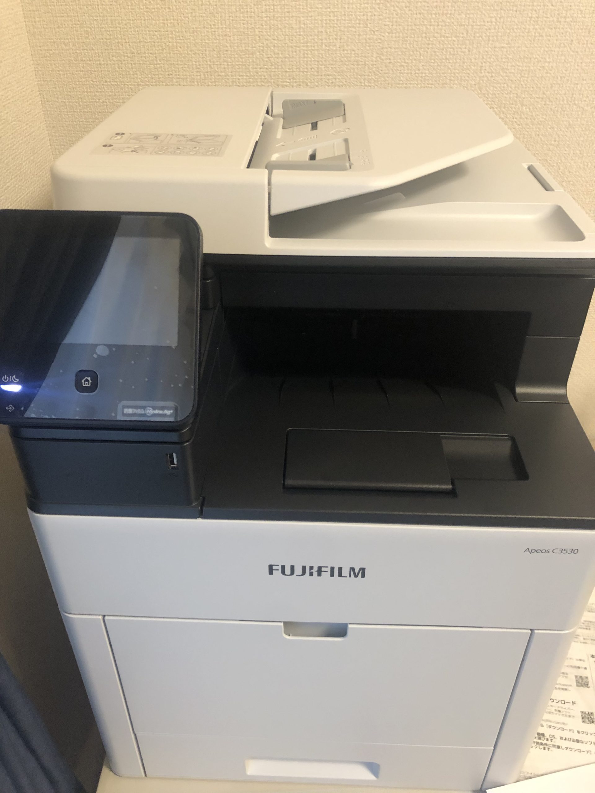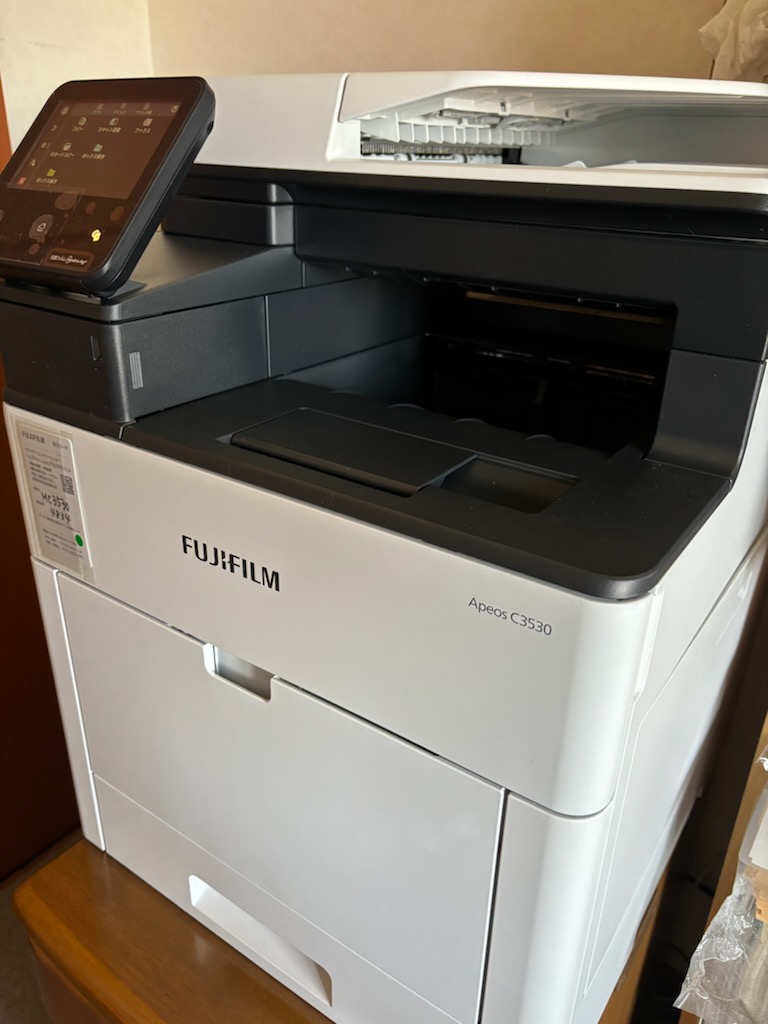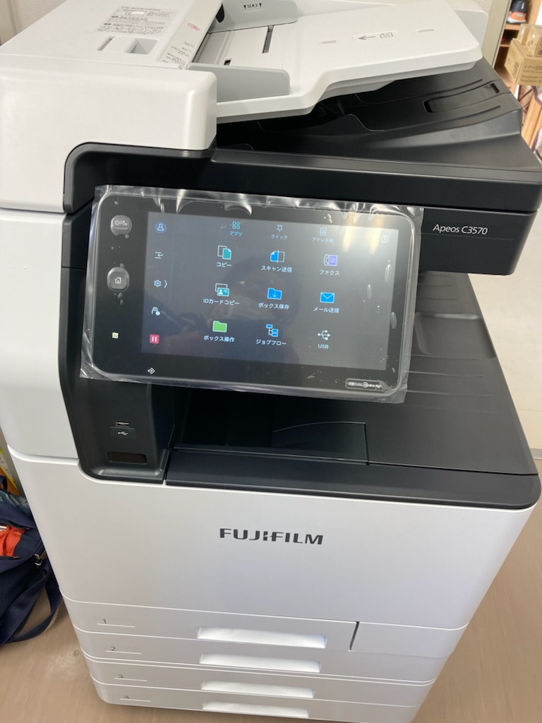 この度、A4複合機をご用命いただき設置させていただきました。 今までコンビニに行ってプリントアウトしていてコストと時間の面で大変不便をされていました FAXやスキャンの需要も増えてきてご相談いただきました。 現場工事の際に工期や内容を張り出すのですが、雨が降ると読めなくなってしまうとお悩みを聞きましたので 今回は水に濡れても大丈夫、破れない用紙レザーピーチも合わせてご紹介させていただきました。 様々なメディアに対応できる富士フイルム製複合機となっており大変お喜びいただきました。