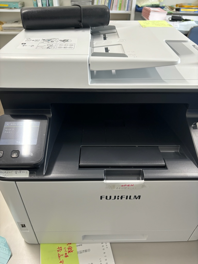 先生からのご要望でフルカラープリンター複合機のご用命を頂きました A4タイプのレーザーでスキャンを頻繁に行いたいとの事。 FUJIFILMBI製A4複合プリンターは小型ながらA3ビジネス機とほぼ同等機能を持っています A4両面もワンパス機能標準搭載 スキャンスピードの速さに大変お喜びいただきました。「インクジェットにしなくてよかった!」と先生のお言葉です