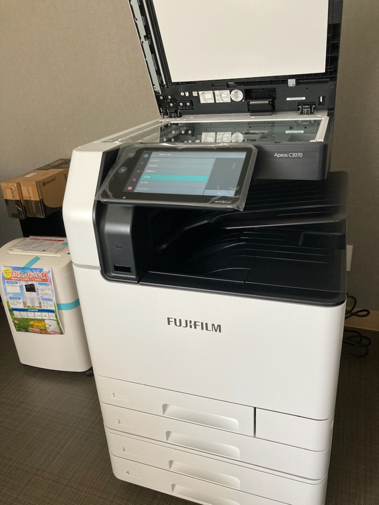 この度、永年ご利用いただきました複合機を富士フイルム製Apeosシリーズに入替 させていただきました。 操作パネルも大きくなりお客様に合わせた画面構成が出来るようなりました。 スマホからのWifiダイレクトプリントもでき大変ご満足いただきました。