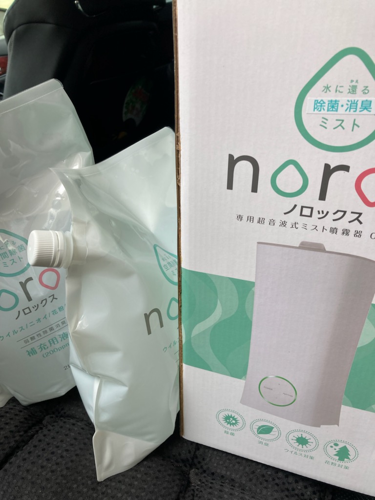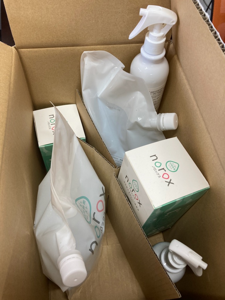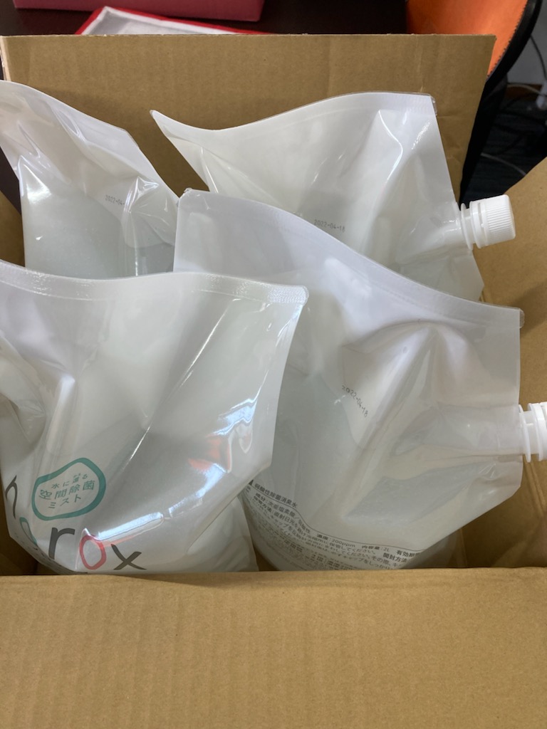 norox製品の追加注文です。2リットルパウチとUSB噴霧器とスプレーボトルのお届けです。