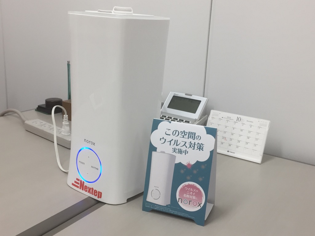 noroxを導入頂きました。会議中のニオイ社員様のインフルエンザ対策いろいろな場所の除菌と幅広く使え大変お悦び頂きました。