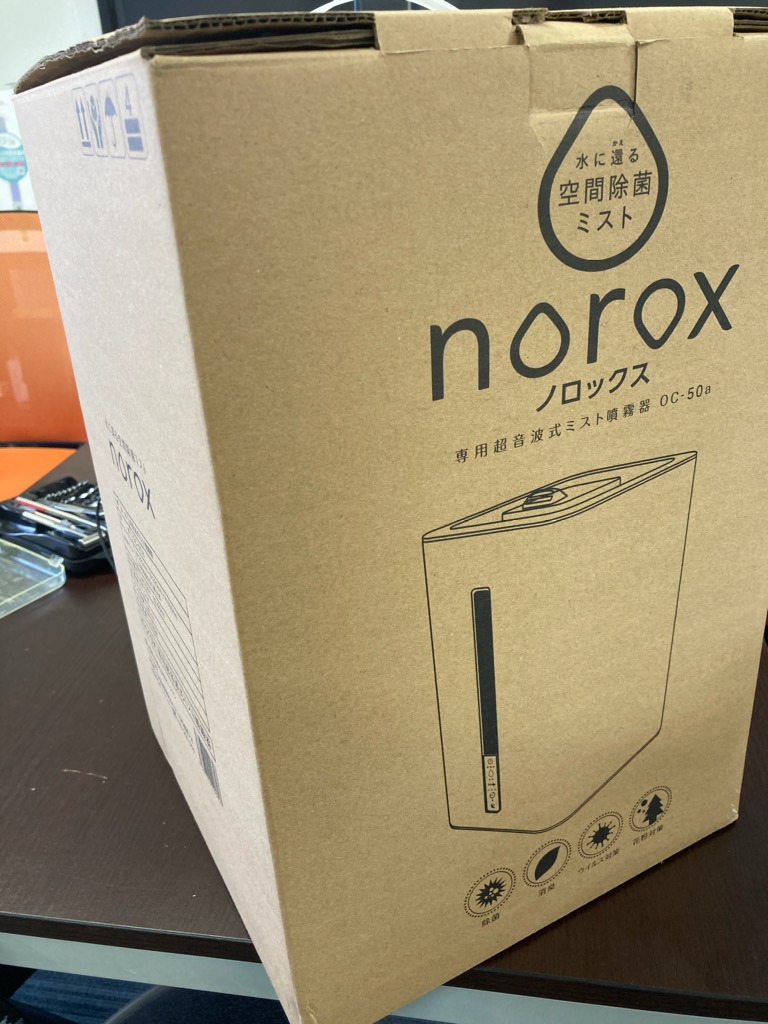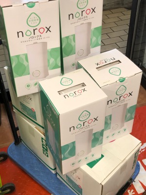 この度noroxのご注文を頂きました。 お客様に安心してご来店頂くために、噴霧しているとイメージUPにもなるとご採用頂きました。 ウイルス対策POPもお付けして納品させて頂きました。