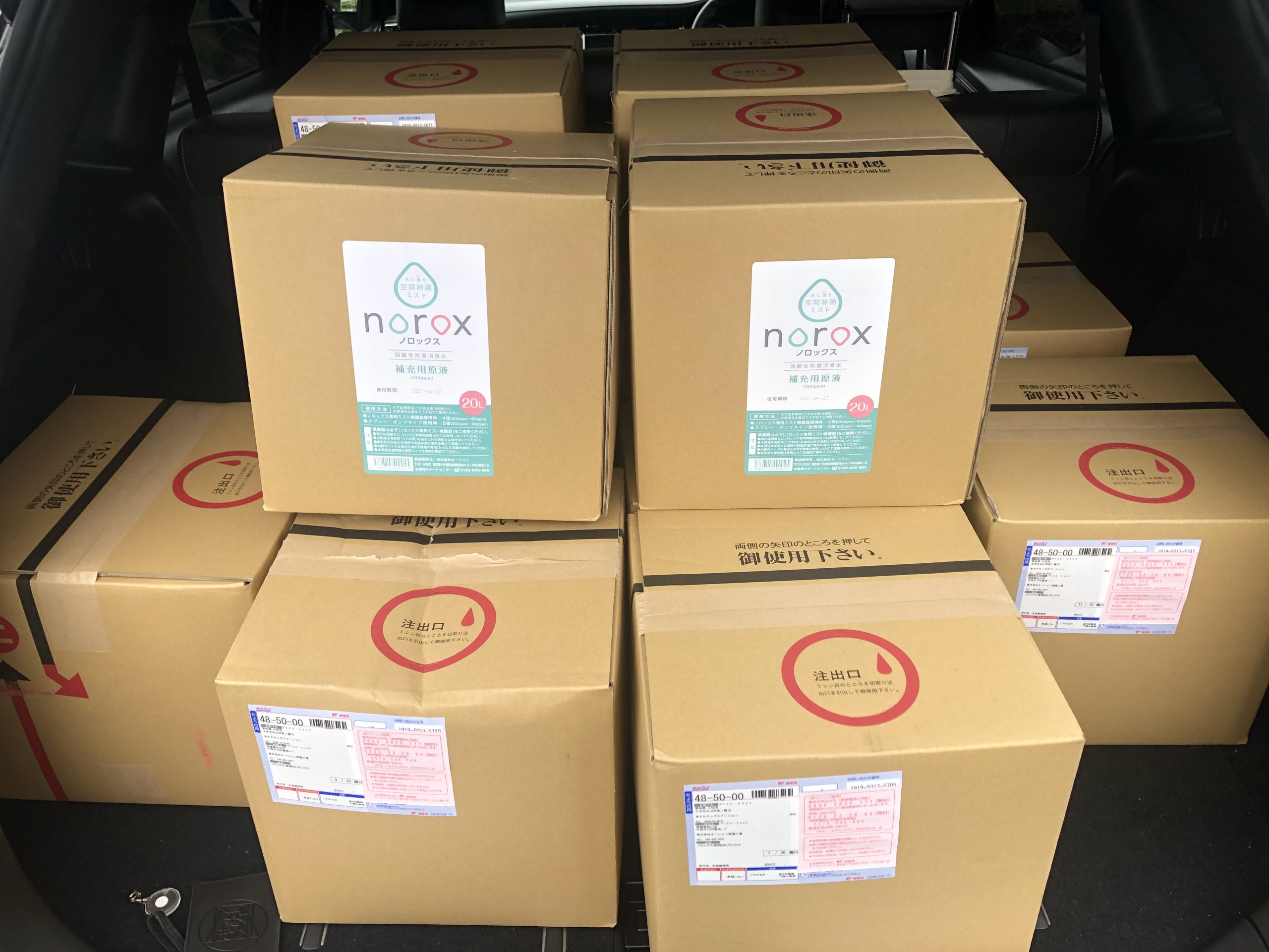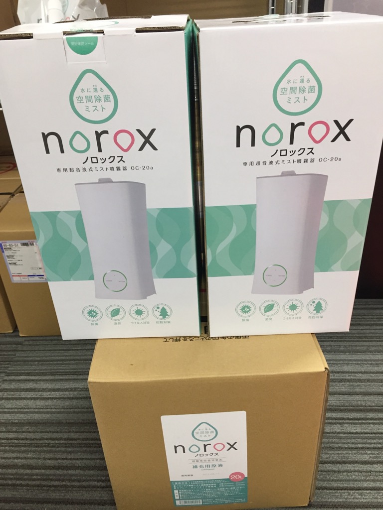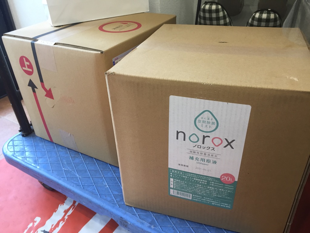 どんどん脅威となる新型コロナウイルス対策として「norox」の緊急対策。 噴霧器は既にお持ちの為、20リットル液剤を2箱ご注文を賜りました。 弊社は昨年に㈱オーシャン 様と正規代理店契約を行っていた為Web上では なかなか購入困難な「次亜塩素酸水」が安定的に入荷してきています。 皆様に少しでも安心していただけるべく即納体制をとっております。 現時点で対策方法は難しい厄介なウイルスと企業としてどの様に対処すべきか。。。