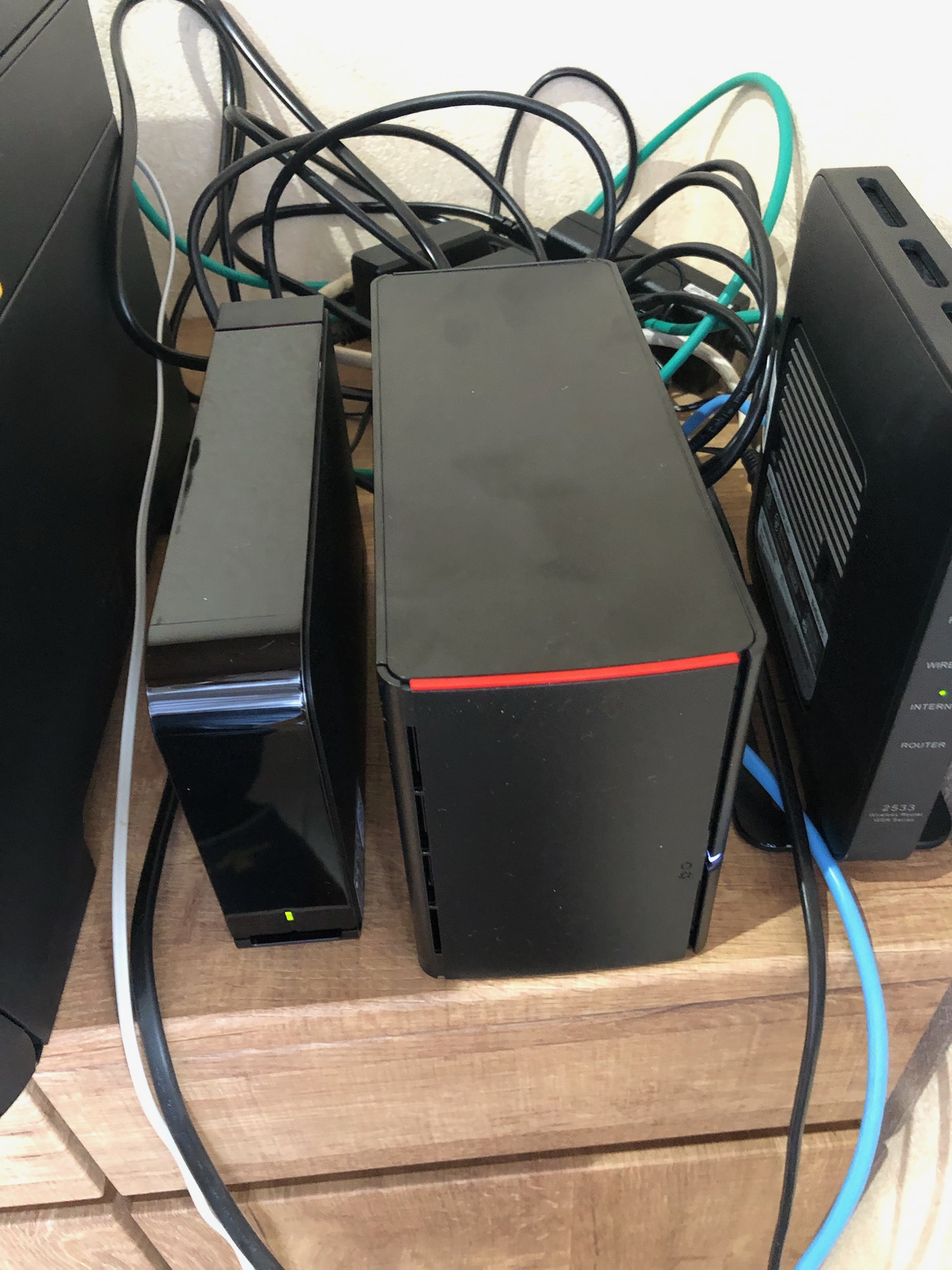 この度、外付けHDDをNASに入れ替えて頂きました。 会社の大事なデータですので無停電装置にNASでミラーリングをかけ念のため 外付けHDDでさらにバックアップと安心な構成にさせていただきました。
