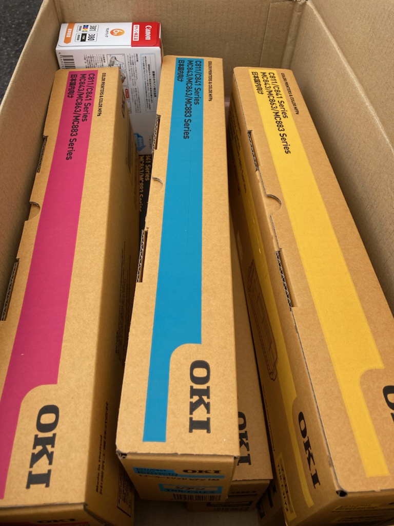 沖データ製カラープリンター用の消耗品を納品です。 昨今のコロナ禍等の影響等々で2022/9から価格改定が行われます。 カラープリンター(A3対応)の全消耗品を全て購入するとかなりの額となります。 困ったものです。