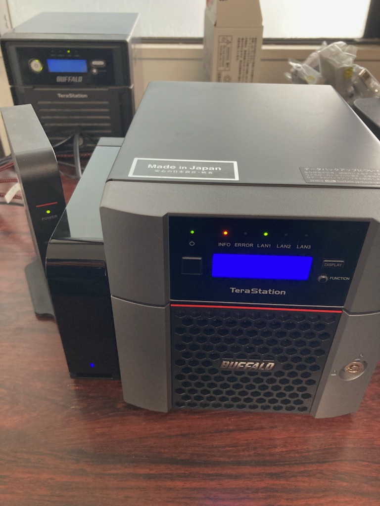 この度、社内データの共有・バックアップシステムのNASを導入させていただきました。 今までは個々のPCにデータが保存されており、メールやUSBにてやり取りをされていました。 PCが壊れるとデータが全て消えてしまう為、これで安心だと喜んでいただきました。 今後のFAXのペーパレス化、紙書類のデータ化などDXに向けて必要な機械です。