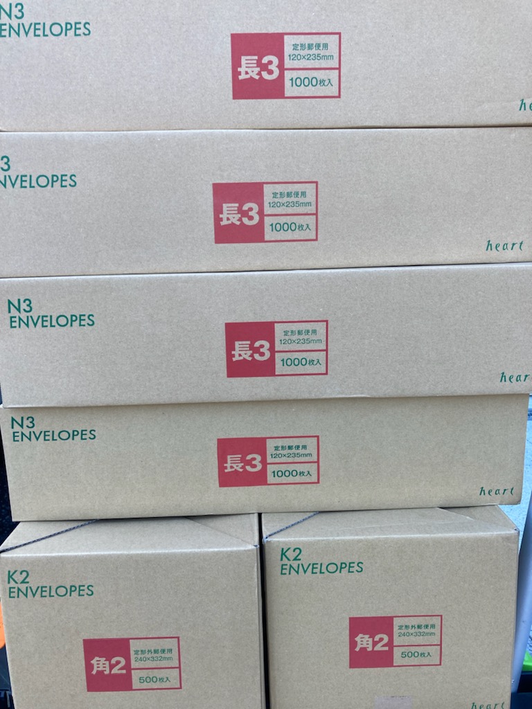 この度、封筒メーカーから7月1日からの値上げ連絡があった為、値上げ前に各種名入れ封筒(3色カラー)の ご注文を頂きました。ロゴマーク等で3色カラーの為1週の封筒でも値上げ幅が大きくなります。 印刷内容もこの期に変更されたいとの事で、弊社にてイラストレーターにて版下構成変更いたしました。