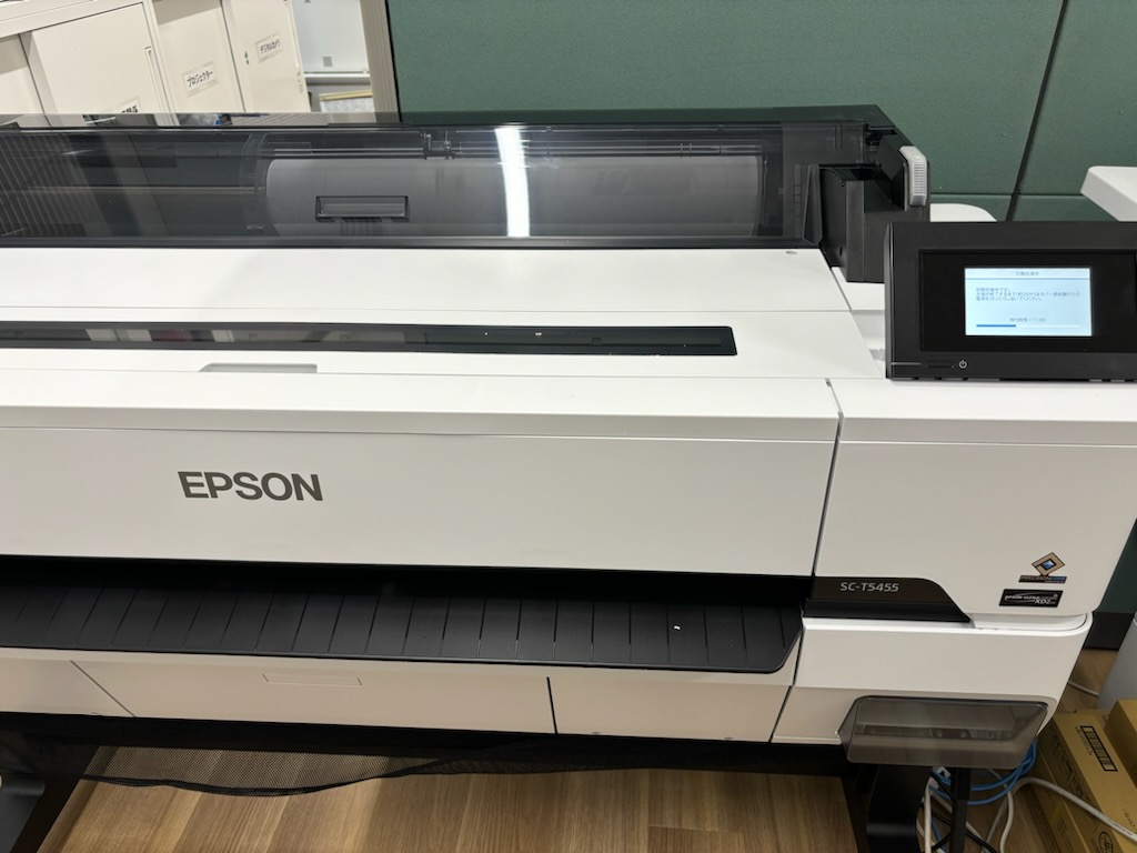 既存の他社製大判機の経年劣化に伴い、EPSON製大判機に入れ替えさせていただきました。 消耗品交換の簡易さ、操作性、画質等々でネクステップのお勧め商品です。 お客様の用途に併せて機種をお提案させていただきます。 今回はポスター需要がメインの為、用紙も薄手半光沢紙(おすすめ)をご利用していただきました。 今までの厚手光沢紙は用紙の取り回しが大変でした、非常に扱いやすいとお喜びいただきました 印刷スピードも約倍近くとなり先生方にも大好評を頂きました。
