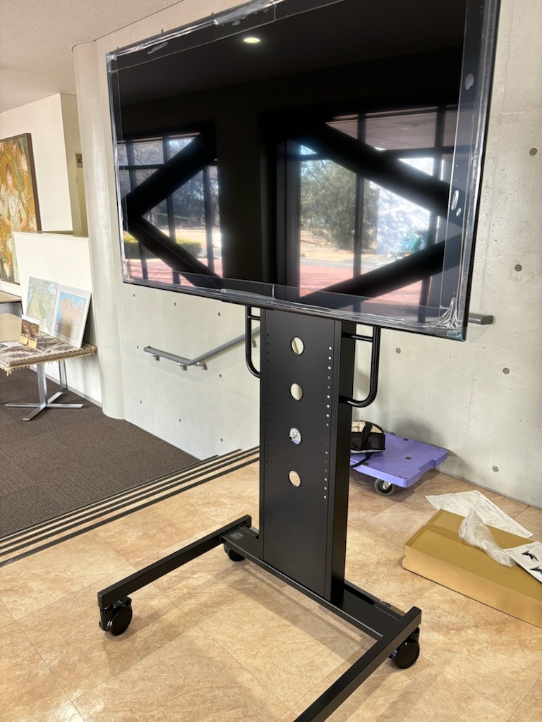 この度、新学部設立にあたり85インチモニターを3基導入させていただきました。 圧巻の大きさですが広い講義室内に設置するとそうでもなく。。。 今後液晶プロジェクタ投影よりもインチ単位が安価になってきた液晶モニターの方が 綺麗ではないでしょうか! 折角作成した資料はデジタルであるのにアナログに落として 投影よりも4K/5K対応の液晶モニターの方が断然綺麗です。搬入設置は大変ですけど。。。