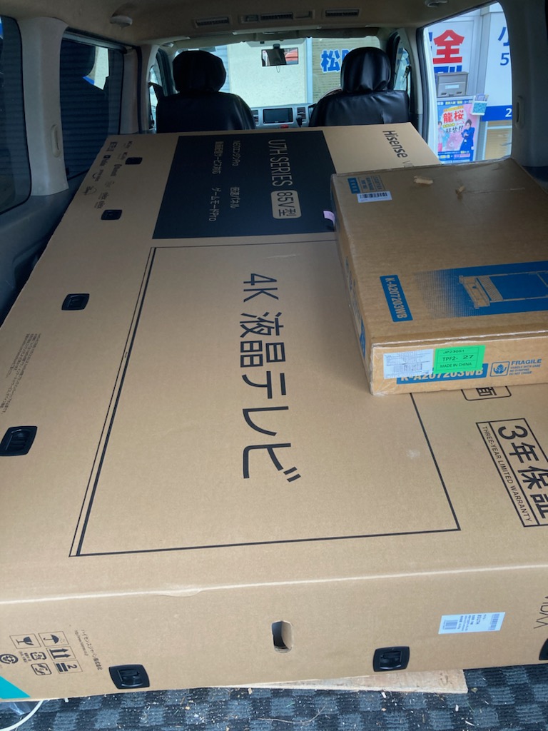 講義でご利用される大型モニターとして85INCモデルの納品です。 TOYOTA製ハイエースは本当に便利ですね! 85INCモニターもバッチリ積載! ハイエースに乗らない物は無い とよく言いますが本当です!!