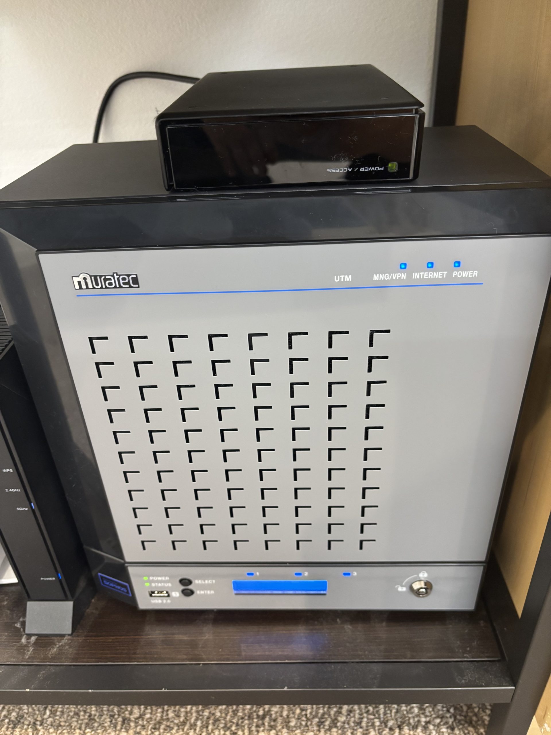 この度、ムラテック製UTM TM-BOXを導入させて頂きました。 社内のセキュリティ向上と、テレワーク機能のリモートVPNを使いたいとのことでご用命を頂きました。 さらにNASも設置させて頂き、社内データの管理と共有、破損、紛失のリスクを抑え さらなる業務効率化を推進させて頂きました。 会社に戻らなければ出来なかった処理が無くなり、大変お喜び頂けました。