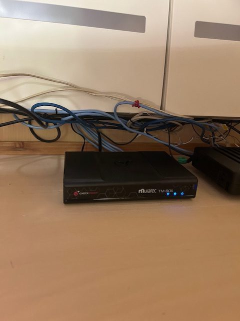 UTMライセンス終了の為リプレイスを行っていただきました。 コロナもあって激動の5年間。よく機能していただきました。 今回は振る舞い検知機能オプションも追加搭載して設置となります V-LAN設定にて各部屋に配電盤から接続です。