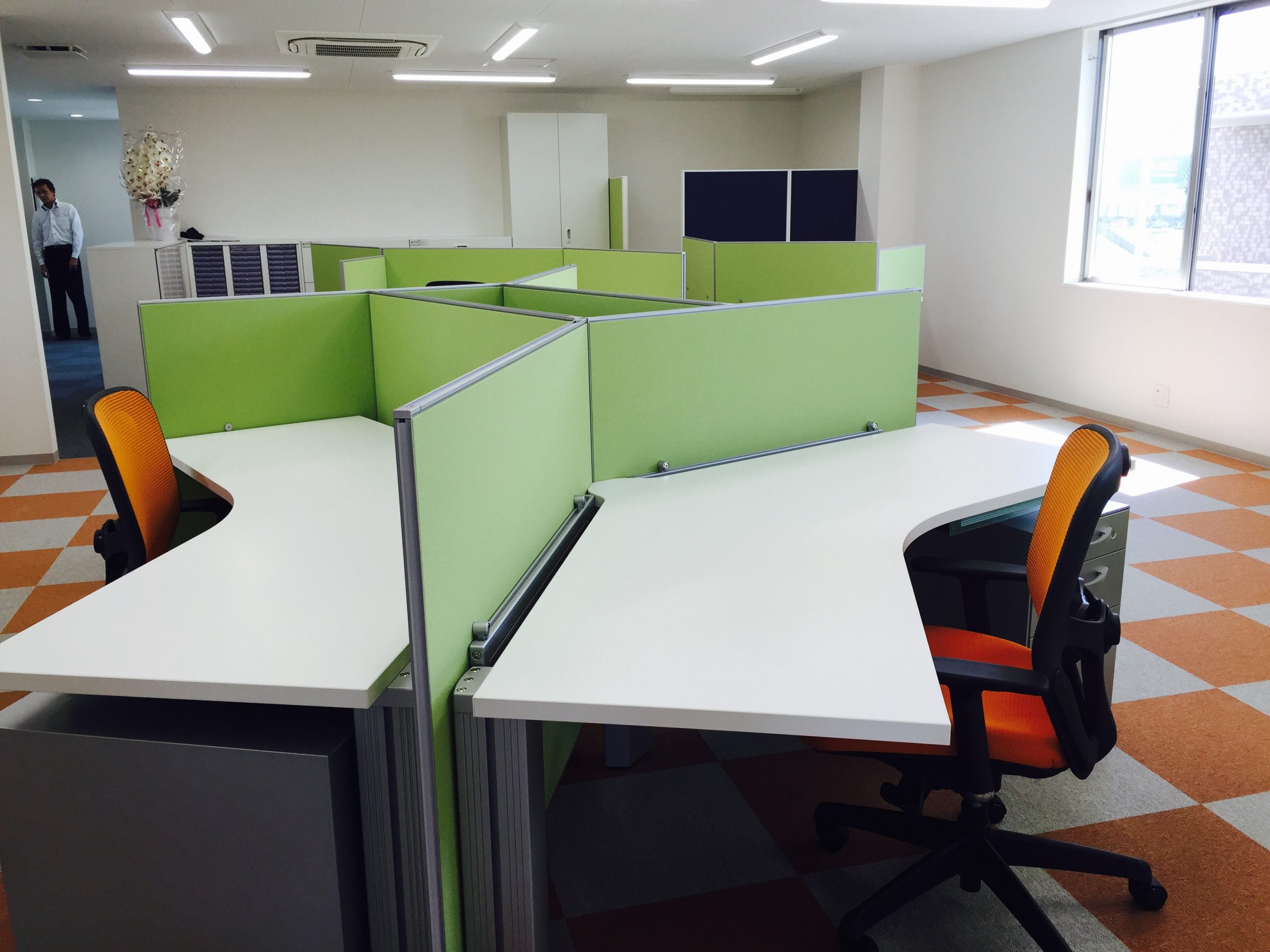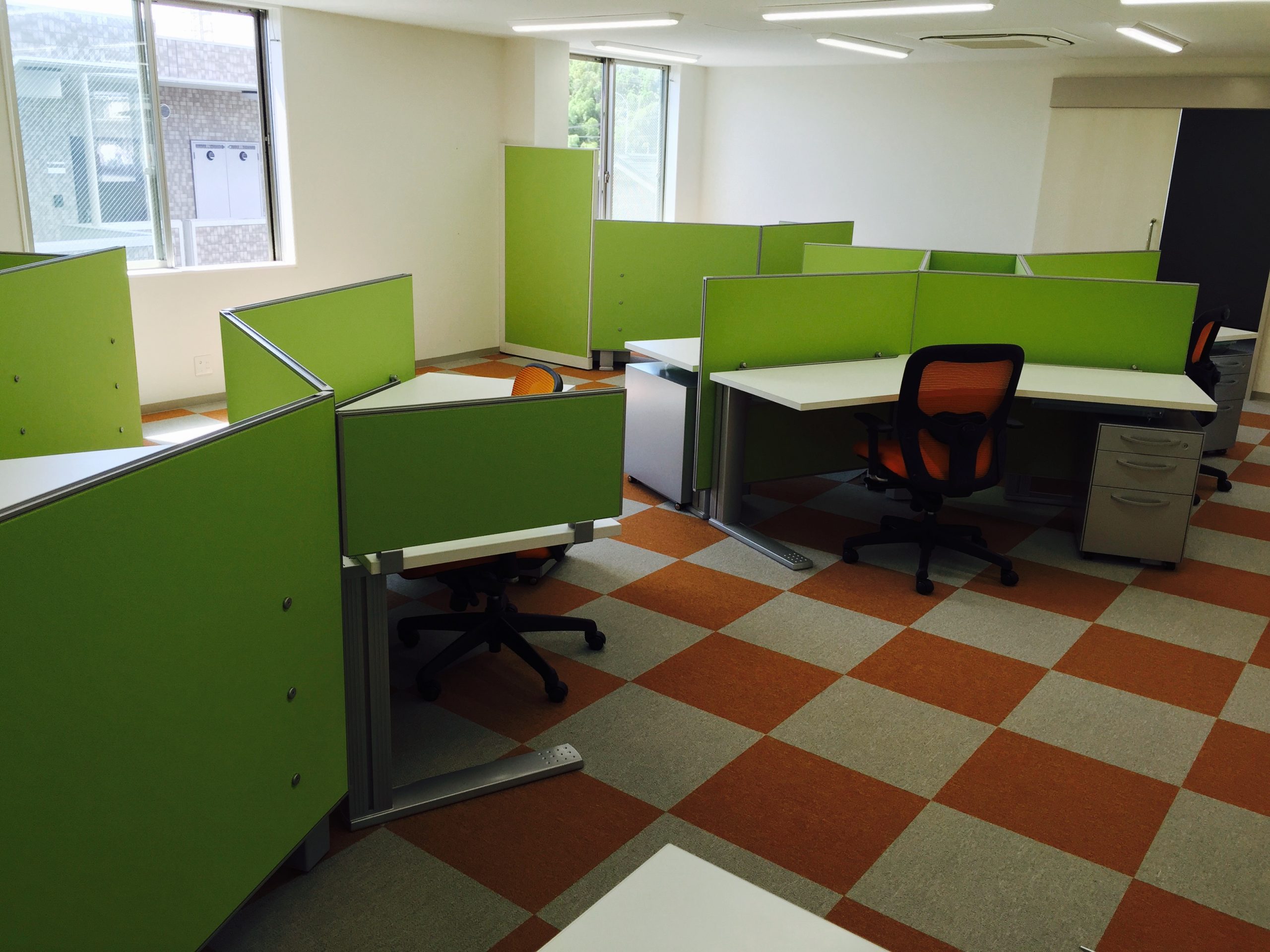 この度、新事務所開設にあたりオフィス什器を全てデザイン及び施工をさせていただきました 社長様のご意向で事務所内はシック系よりビビット系にされたいとの事でタイルカーペットも 思いっきりビビットカラーにてご提案。「明るい事務所で大満足」とオーナー及び女性社員様からも 大絶賛いただきました。