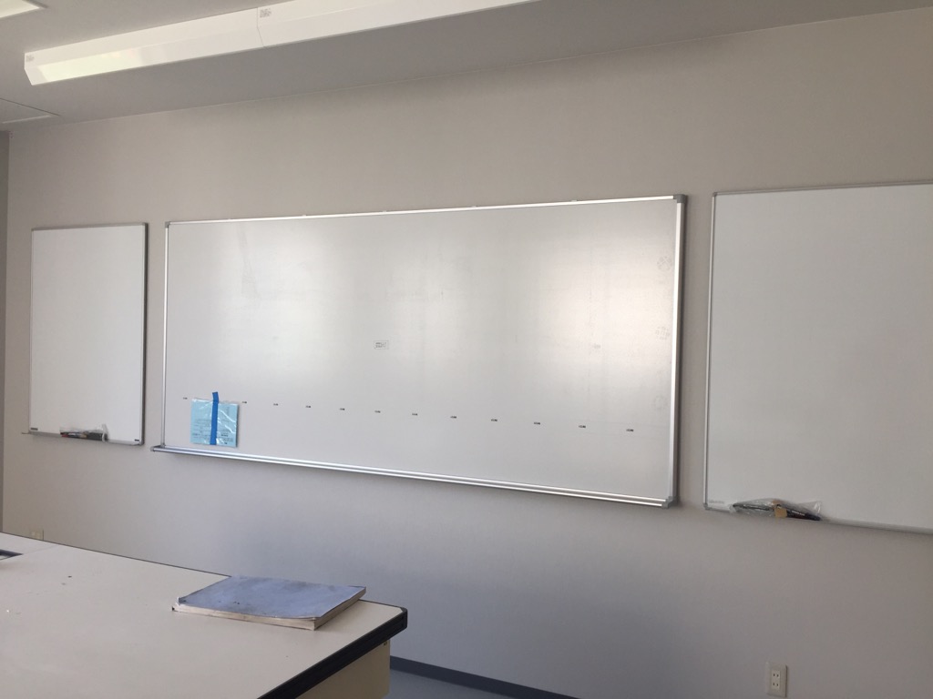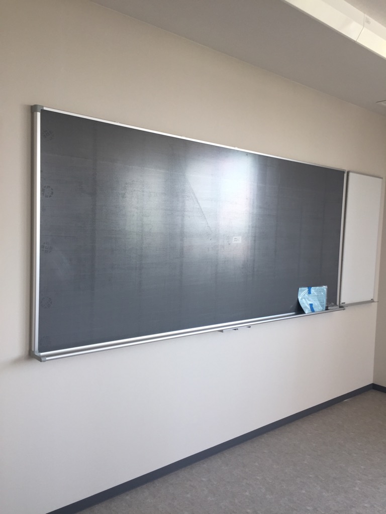 この度、新築校舎内教室用のホワイトボードを搬入施工させていただきました。 今回は先生の強いご要望でチョークも使用可能で且つプロジェクタ投影も可能な 特殊ホワイトボードグレータイプやホワイトボードプロジェクタ投影タイプ等々 全て方眼ライン入りが数十枚に及びました。 先生方にも大変ご満足していただけました。 黒板が設置されると教室らしくなってきました。