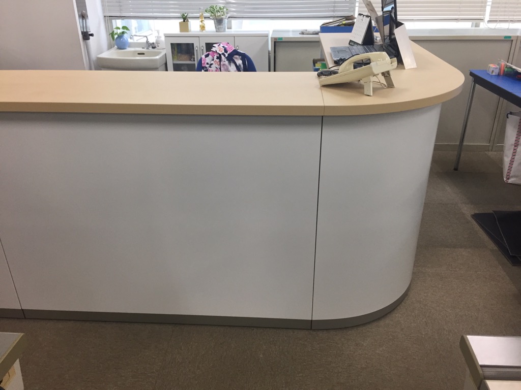 この度、講義室内のカウンター及びデスクをリニューアル していただきました。 昨今のカラー「ニューホワイト」は白色が鮮やかで講義室内が 非常に明るくなったと大変喜んでいただきました。