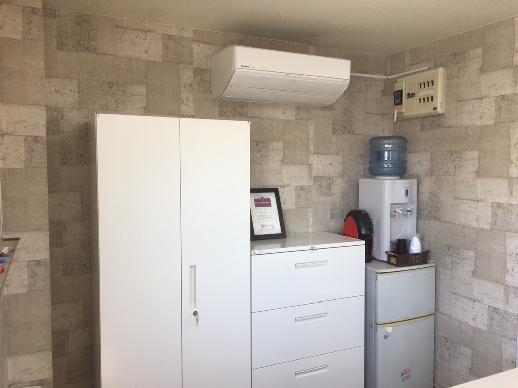 この度、インフラの整備に伴い事務所内の収納も同時に変えたいとの ご要望を頂、既存書庫を撤去すると永年の壁紙が汚れたり剥がれたりで このまま新しい書庫を入れても。。。とのことで弊社にて壁紙を張り替え工事。 折角張り替えるならモダンなコンクリート調にしませんか!との提案に賛同いただき 壁紙張替え。 昨日書庫も搬入完了!大満足頂きました。 綺麗におしゃれになったら冷蔵庫が古くて気になるな。。。との社長様。(笑)