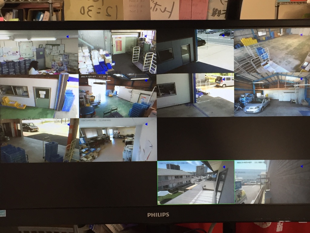 職業柄、海外出張等が多い為、タブレット・スマホ等で 事務所の様子が見られるようにドーム型カメラを 設置いたしました。 24時間録画で約2週間分が録画可能です 今回は2基でしたが増設可能なように4chタイプに してあります。 暗視タイプでAHDの為、画質も非常に綺麗です デジタルタイプよりも綺麗なのでは。。。