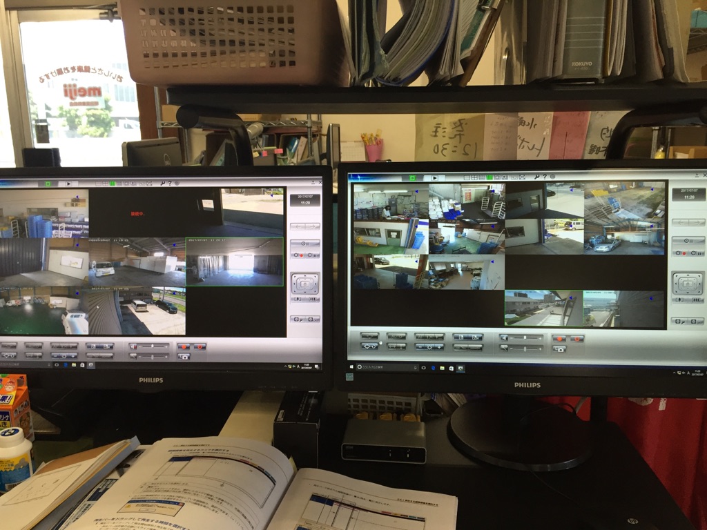 愛知・岐阜県下に10店舗を経営して見える販売会社様 今回はNTT様とタイアップさせていただき全店ネットワーク監視カメラを設置いたしました。 台数が各店舗2台づつで多いためPC2台で録画監視が可能に致しました。 P社の高画質カメラでも非常に滑らかに写りお客様にもご満足いただけました。