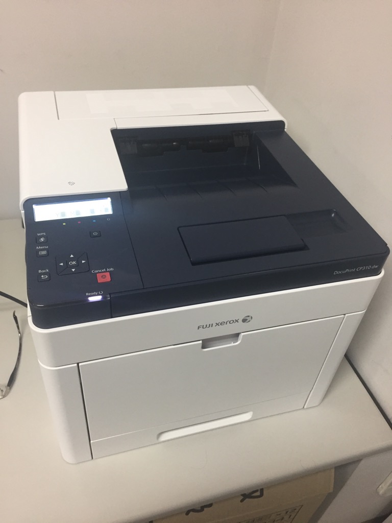 この度老朽化したプリンターの入れ替えを行わさせていただきました。 A4タイプのフルカラーで弊社のお勧めモデルです。 画質・操作性・消耗品・安定性 どれをとっても非常にGoodな商品です 商品はこちら https://www.fujixerox.co.jp/product/ printer/docuprint_cp310dw
