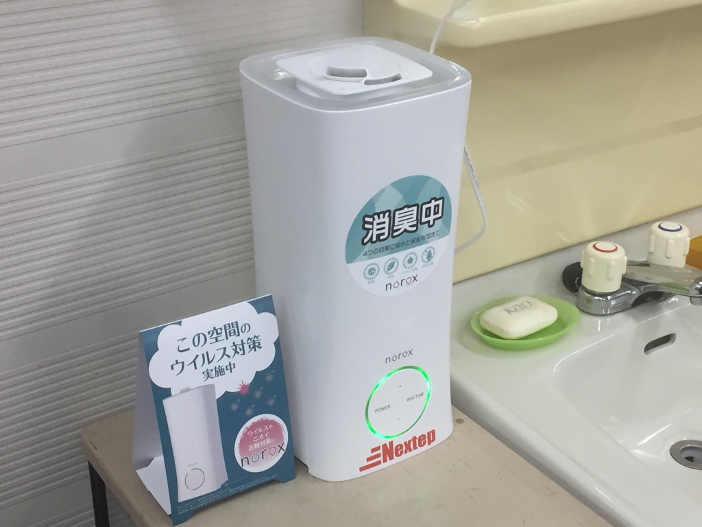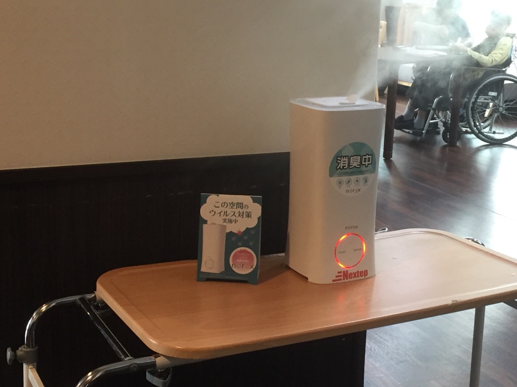 この度、職員の方々のインフルエンザ対策とご利用者の方々への インフルエンザ対策。並びに施設の除菌等々で[norox]を導入していただきました。 加湿器は事務所にはありましたが、あくまでも加湿器。併用して使用してみます!との事です。 女性の方々が多い為、個人的にも孫の為にも買いたいなとのお声をいただきました。