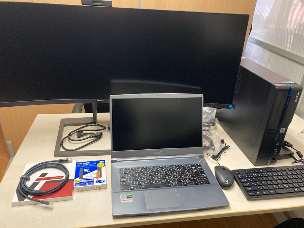 この度、デザイン用に超高性能DT-PCとノートPCを ご採用いただきました。 また今まではマルチモニタで作業してみえたのですが今回は PHRIPS製ウルトラワイドモニタをご採用。 解像度5120*1440での設定です ネクステップも使用していますが、これはお勧めです!