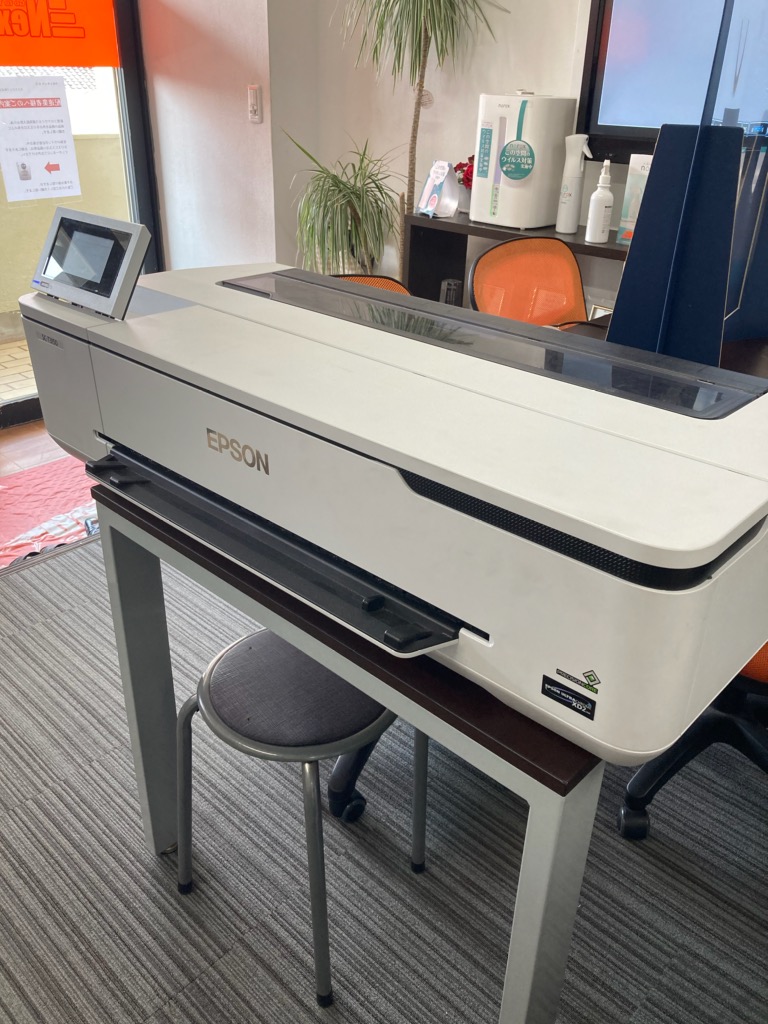 この度、機械CAD図面出力用にA1カラー出力大判プリンターをご採用いただきました。 SC-T3150 ですが、現在全国在庫きれにつき一旦EPSON様よりデモ機をお借りいたしました。 来月初旬に企業説明会に出展されるためそのバックパネルも作成されたいとの事で納品までデモ機にて ご利用いただきます。 弊社は少しでもお客様のご要望に沿えるように最大限の対応を全社員で努めてまいります。