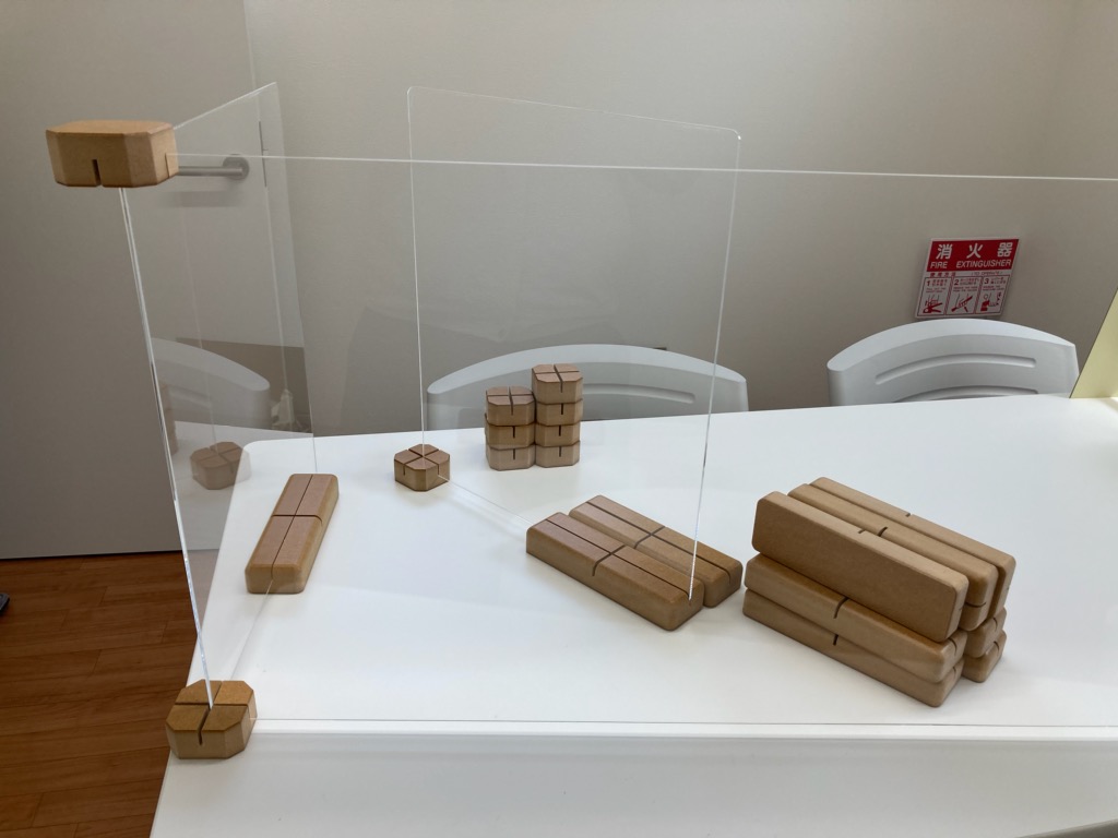この度、全園に飛沫防止パネルをご導入頂きました。コーナーが木製のブロックになっており用途によりいろんな組み合わせでき大変お喜び頂きました。