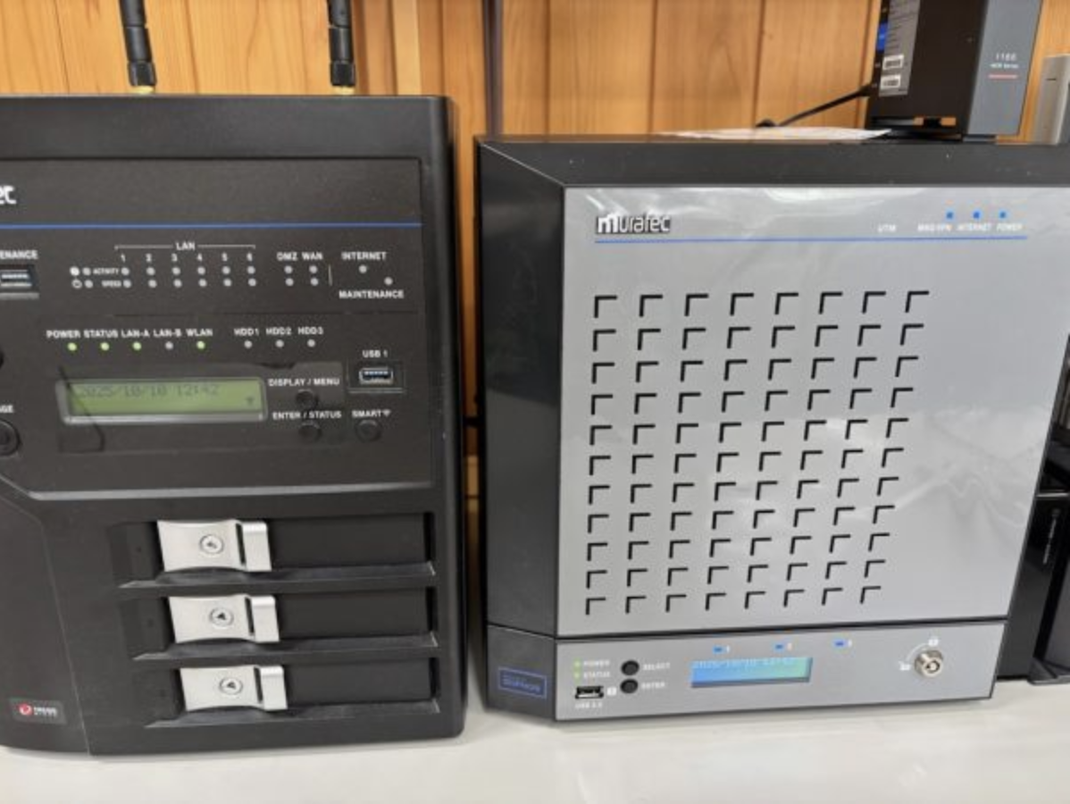 この度、ご縁をいただきムラテック製UTMとNASをご導入いただきました。 オプションのサンドボックスス(振る舞い検知)も追加いただきより強固な対策 をさせていただきデータ整理・保存の為NASの設定をさせていただきました。