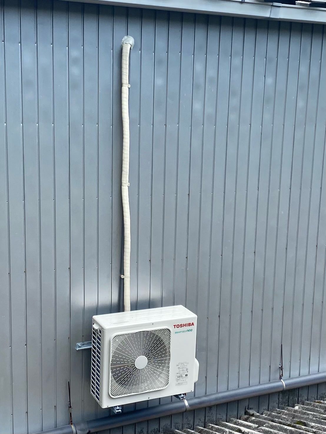 この度倉庫の一部を部屋にされたいとの事でエアコンの新設のご用命を頂きました。 永年OA機器でお世話になっていましたが、エアコン関連は初めてお声をかけていただきました。 「永年内装工事等でお世話になっていた業者に見積もり依頼をかけたら非常に高く予算以上となってしまって 困っていた。ネクステップのエアコン清掃のチラシを思い出しダメもとで声を掛けたら翌日現調に来てくれて 見積もりも非常に安かった。施工もバッチリで非常に助かりました!」と専務様談