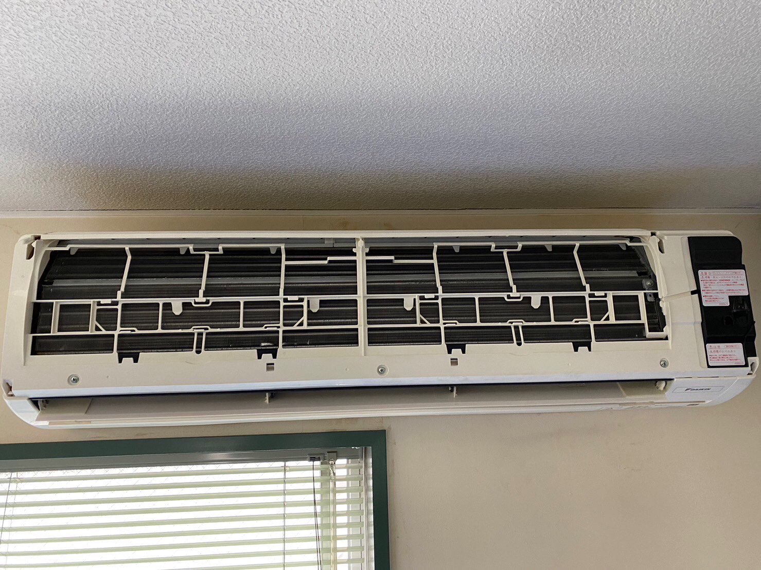 この度、約10年ぶりにエアコン清掃のご用命を頂きました。 今回は事務所内ダイキン製エアコンです。 事務所内で熱帯魚水槽を完備されている関係で猛暑中もエアコンが フル活動! 電気代の為にも環境の為にも久しぶりに清掃されたいとの事。 事務所前が国道の為、排気ガスや噴煙を巻き込んでいるようで かなりの汚れが。。。