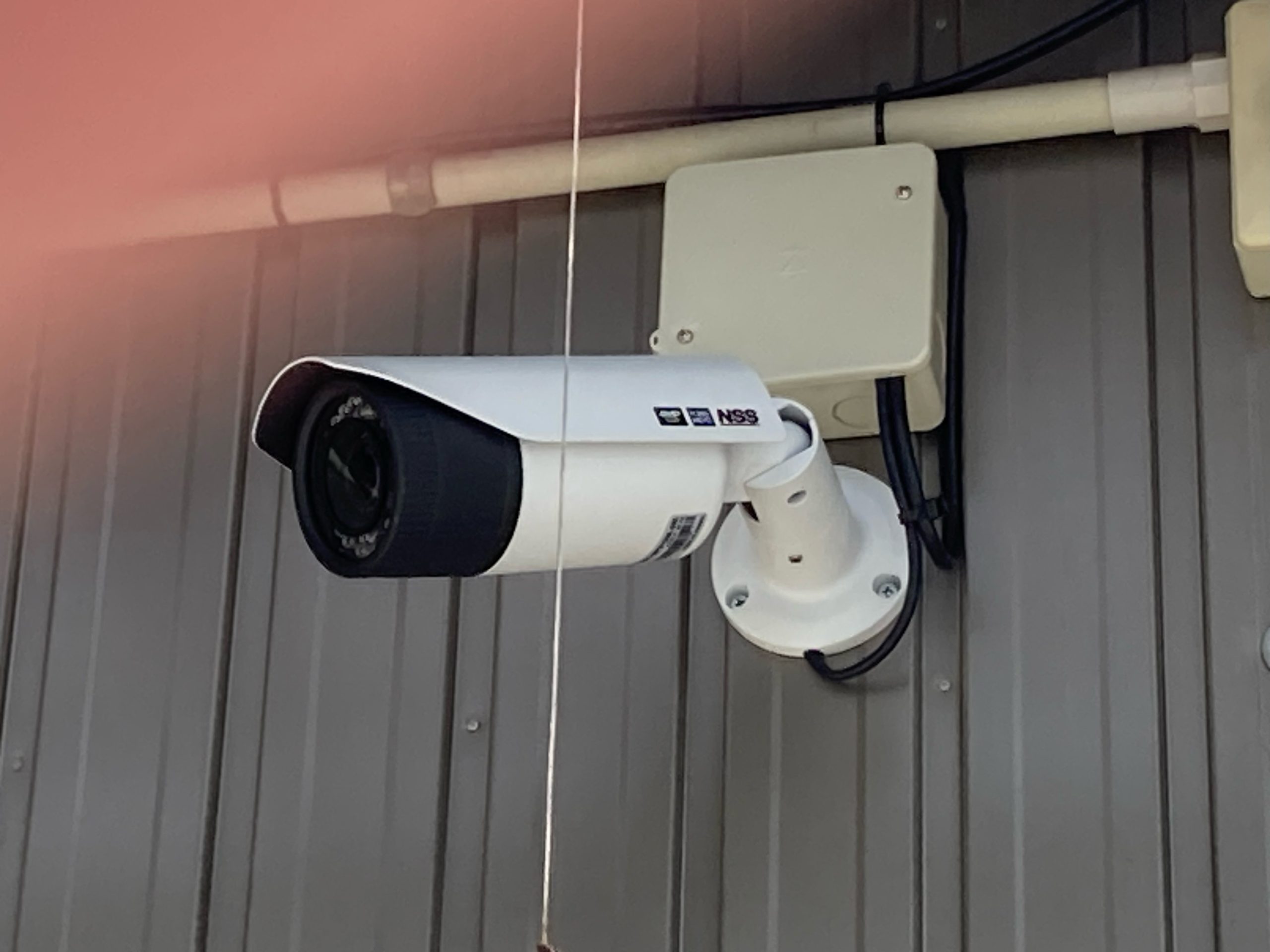 この度ドッグラン開設にあたり、防犯カメラを設置しました。 従業員さんとお客様の安心・安全の為と、 離れにある資材置き場の監視を目的として設置。 高解像度且つ、108°の広角レンズで死角もほとんど無く設置をしました。