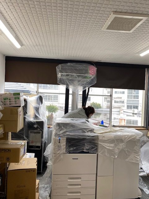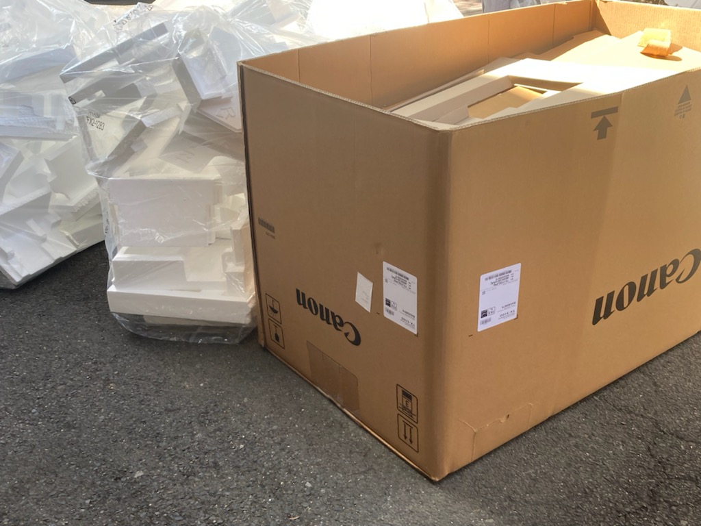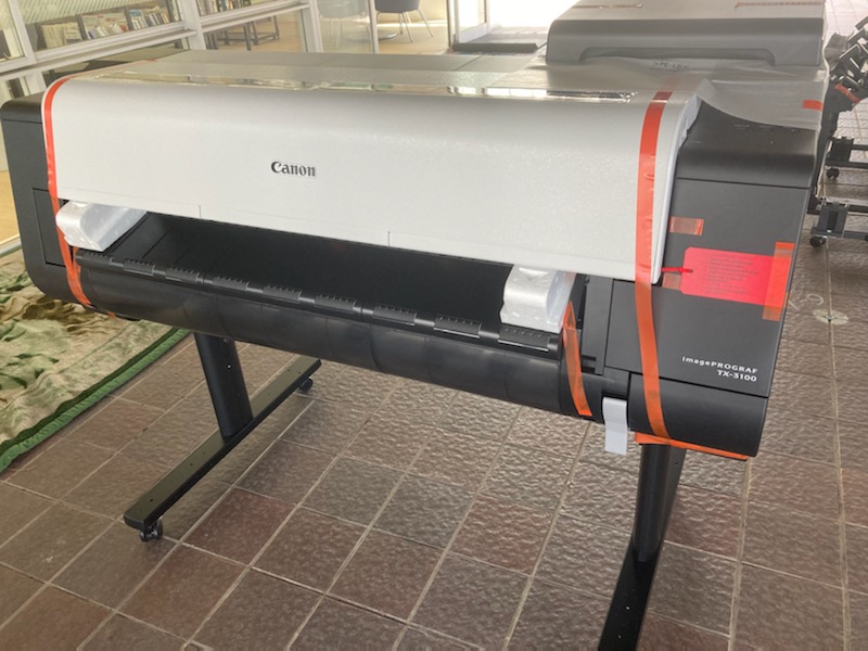 この度、学部CAD室内に於けるプロッターのリニューアルを行っていただきました。 従来のレーザープロッター3台に替わり、ランニングコスト及びスピード重視でキヤノン製インクジェット大判機 TX-3100を5台搬入させていただきました。 本来なら昨年度の導入予定でしたが、半導体不足の影響にて商品がなくなり1年越しでの搬入となりました。 4トントラック2台で廃棄発砲の量も大変です。