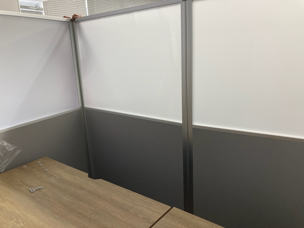 広い研究室を圧迫感なしにオシャレに間仕切りたいとのご要望を頂き 摺りガラス風ローパーティションを導入させていただきました カラーも研究室内に合わせてグレー調に。 先生も生徒さんも大変お喜び頂きました