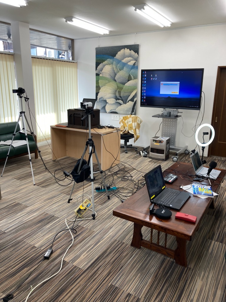 この度、全国約20店舗社員約300名に向けて本社からLIVE配信を行いたいとのご要望。 昨今のコロナ禍の影響で一同に会した全社会議が出来なくなりましたが、アフターコロナも踏まえ 全店長会議や役員会議もすべてWEB配信となります。 その中でもより臨場感を出し、会社の意思がビジュアル的にも全社員に伝わるようにスイッチャー等を組み込んだ 本格的なスタジオ装置を導入いただきました。 65インチの大型ミーティングボード「MAXHUB」もご採用です。http://MAXHUB「All in One Meeting Board」 | ウチダエスコ サービスサイト (esco.co.jp)