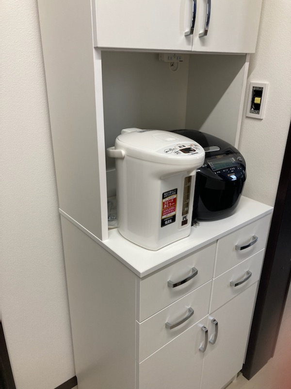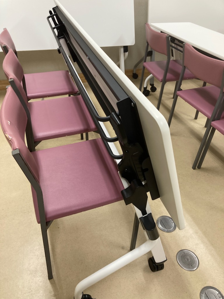 この度、管理施設内の什器を搬入させていただきました。 36名分のスタッキングチェアとフォールディングテーブルとホワイトボード 食器棚にシューズボックス等々です。