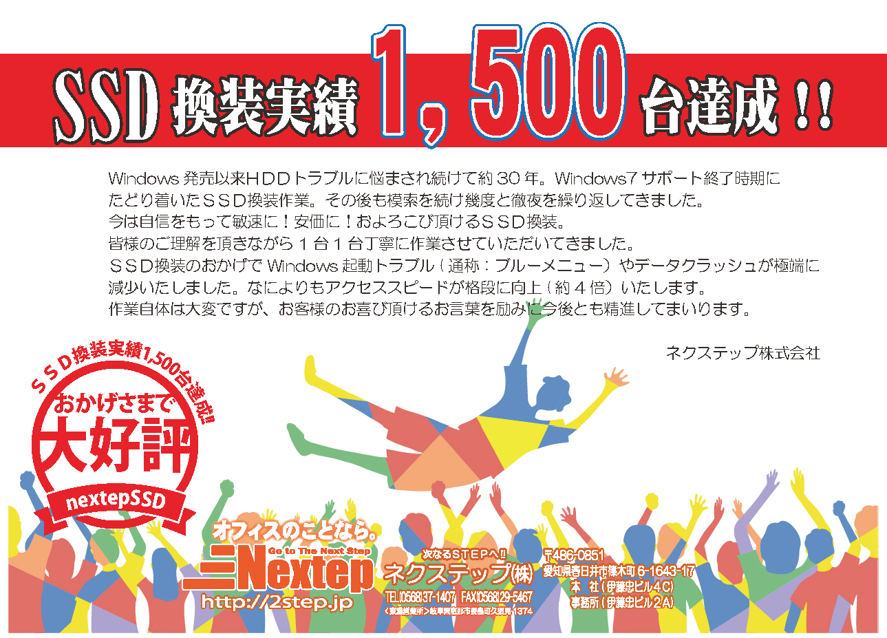 「SSD換装実績が1,500台を達成!!」いたしました。